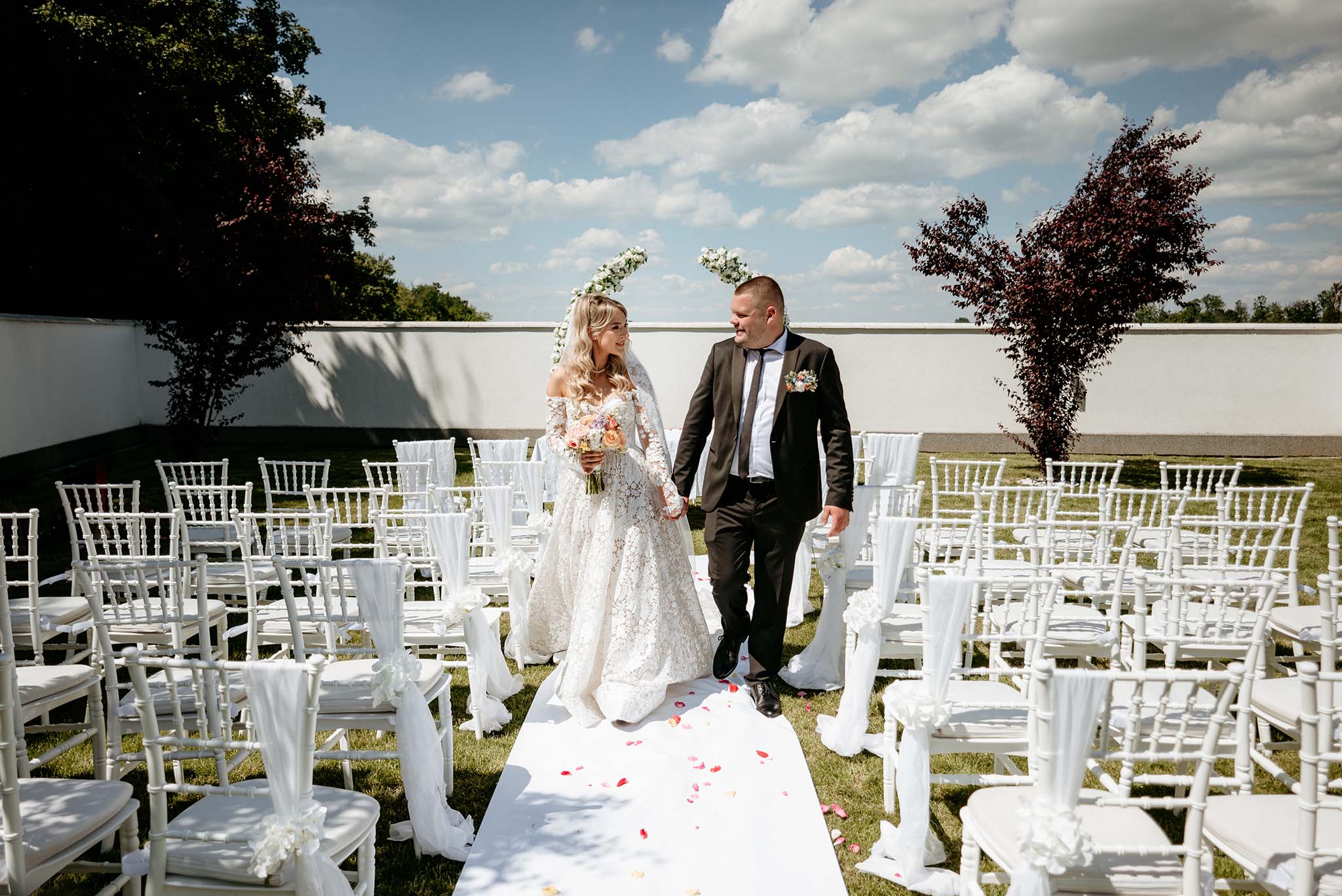 Draganino i Bogdanovo vjenčanje u Beogradu je na lijep način spojilo eleganciju savremenosti sa vanvremenskim šarmom srpske tradicije. Njihov dan je počeo srdačnim vjerskim obredom u prelijepoj Crkvi Svetog Marka na Tašmajdanu, nakon čega je usledila romantična građanska ceremonija i veliko slavlje na živopisnim obalama Dunava.