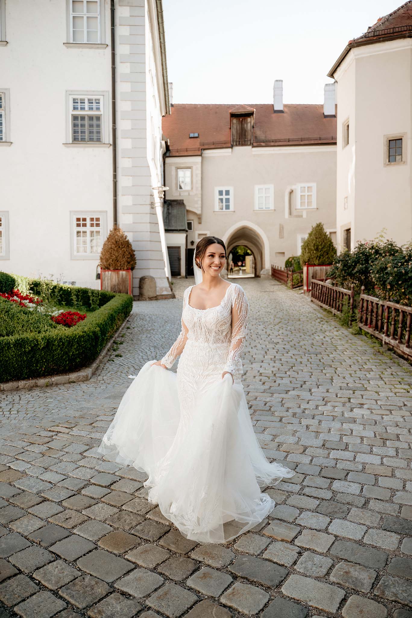 Claudia and Franz’s wedding day in Vienna was filled with sunshine, joy, and elegance. Their heartfelt church ceremony took place in the breathtaking Stiftskirche Klosterneuburg, whose grand and timeless architecture created the perfect backdrop for their vows. The celebration continued at Casablanca Veranstaltungszentrum, where family and friends gathered for an unforgettable evening of love, laughter, and beautiful memories.